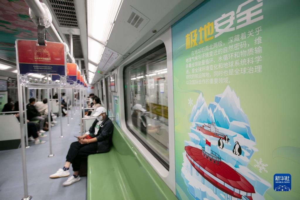 這是4月15日拍攝的上海地鐵“國安號”主題列車車廂內(nèi)景,車廂內(nèi)外以主題海報等形式宣傳國家安全知識。