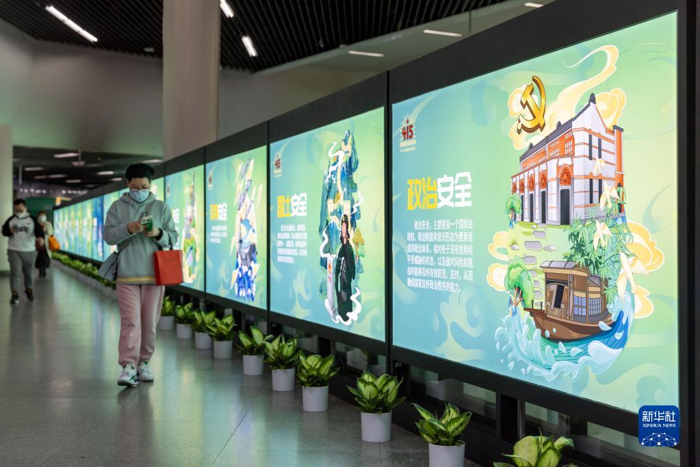 這是4月15日在上海地鐵一號線人民廣場站換乘通道拍攝的國家安全知識宣傳區。