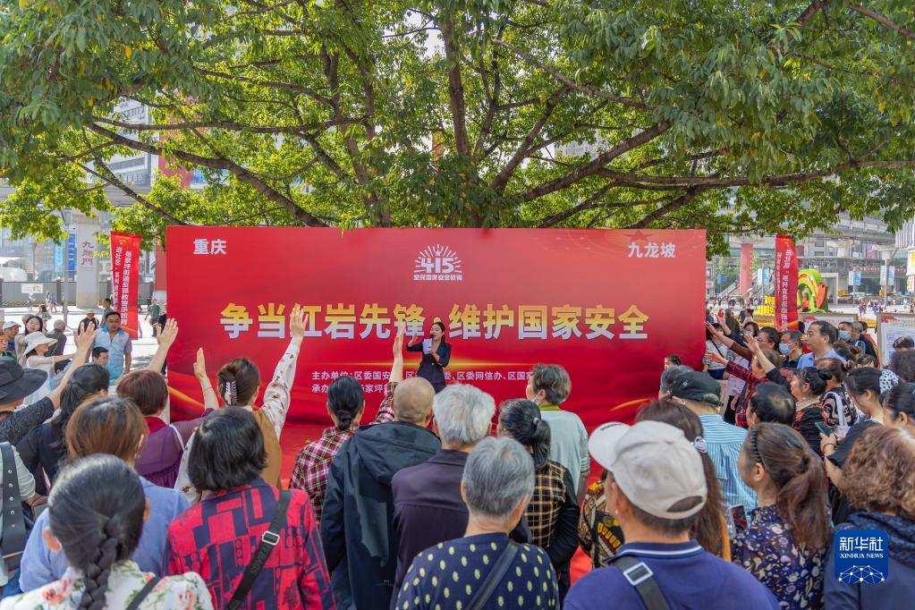 4月15日,在重慶市九龍坡區(qū)楊家坪商圈,工作人員通過現(xiàn)場問答的方式,向市民宣傳普及國家安全知識。