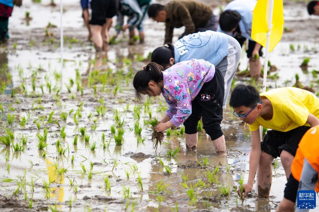 當日,在湖南省長沙市寧鄉市灰湯鎮花果山村舉行的農耕民俗文化節學生研學活動中,孩子們通過開展稻田插秧、捉泥鰍等“農趣” 比賽,走進田間地頭,感受勞動帶來的艱辛與快樂。