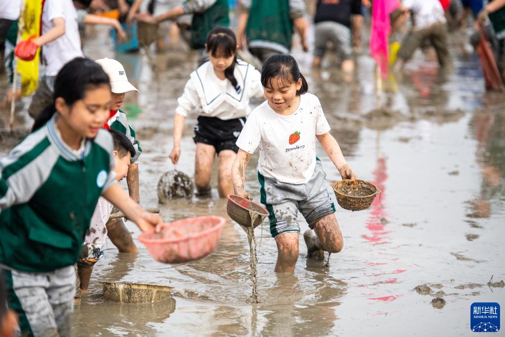 當日,在湖南省長沙市寧鄉市灰湯鎮花果山村舉行的農耕民俗文化節學生研學活動中,孩子們通過開展稻田插秧、捉泥鰍等“農趣” 比賽,走進田間地頭,感受勞動帶來的艱辛與快樂。