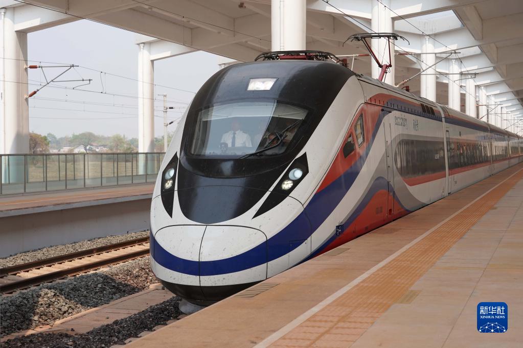 4月15日,中老鐵路列車駛出老撾萬象站。