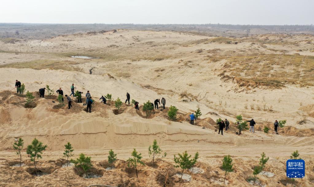近日,在內蒙古通遼市科爾沁左翼后旗,治沙工人忙著植樹造林,給科爾沁沙地披上“綠裝”。科爾沁沙地橫跨內蒙古、吉林、遼寧三省區,沙地面積7760萬畝,在內蒙古通遼市境內占52.7%。近年來,依托“三北”防護林、退耕還林、公益林保護等重點生態工程,內蒙古通遼市不斷加大植樹造林、草原修復和生態保護力度,科爾沁沙地生態環境得到改善。
