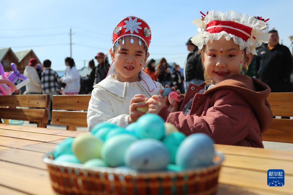 4月16日,兩位小朋友在巴斯克節活動現場拍照。