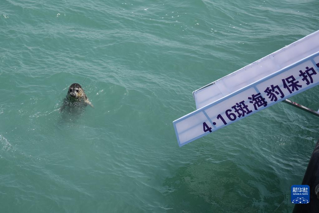 4月16日,被放歸的西太平洋斑海豹在大連市旅順口區(qū)附近海域活動。