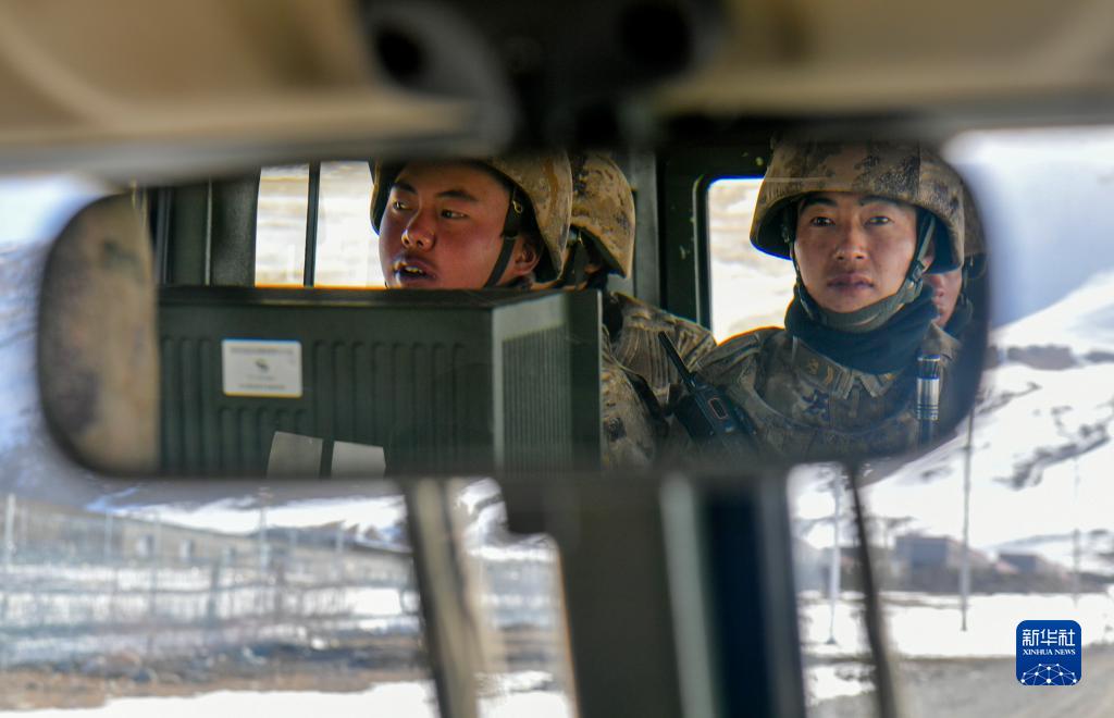 4月14日,周林平(右)和戰(zhàn)友在乘車巡邏。