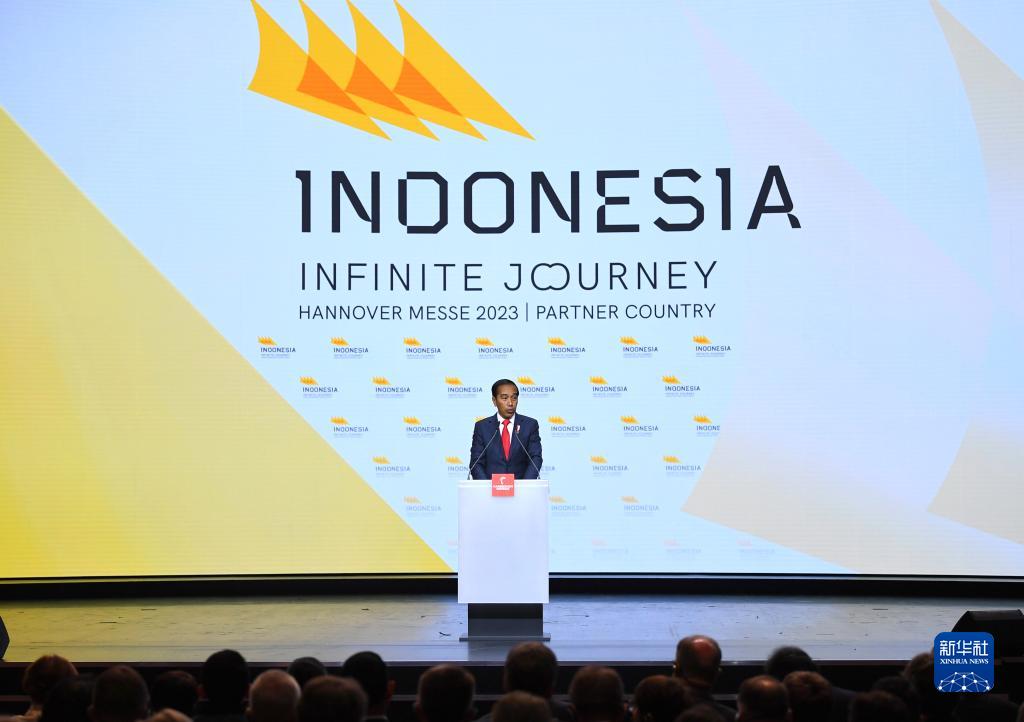 4月16日,印度尼西亞總統佐科在德國漢諾威工業博覽會開幕式上致辭。