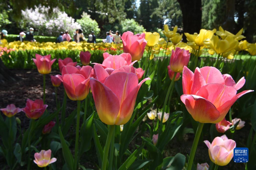 目前,北京中山公園的郁金香花開正艷。據了解,今年,北京中山公園布置了六個主題景區,展出85個品種近20萬株郁金香及洋水仙、葡萄風信子等球根花卉。