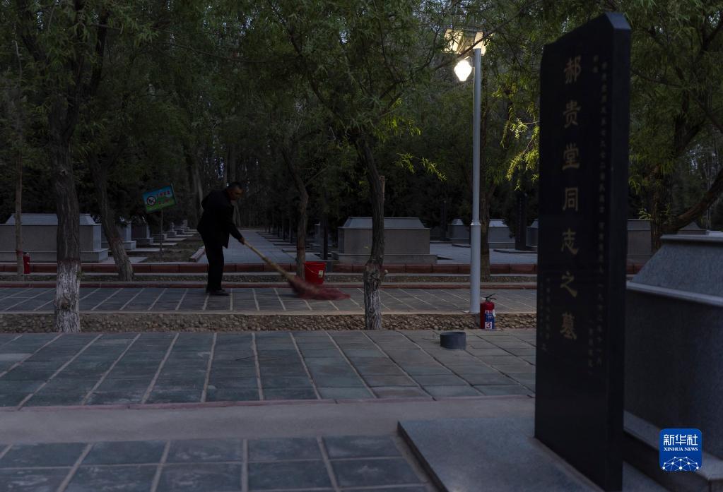 4月16日,天還不亮,艾尼瓦爾·艾買爾來到陵園打掃衛生。