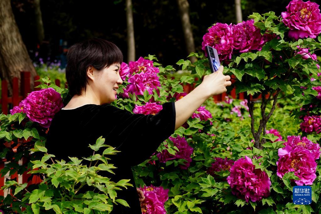 4月18日,游客在河北省柏鄉(xiāng)縣漢牡丹園游覽。
