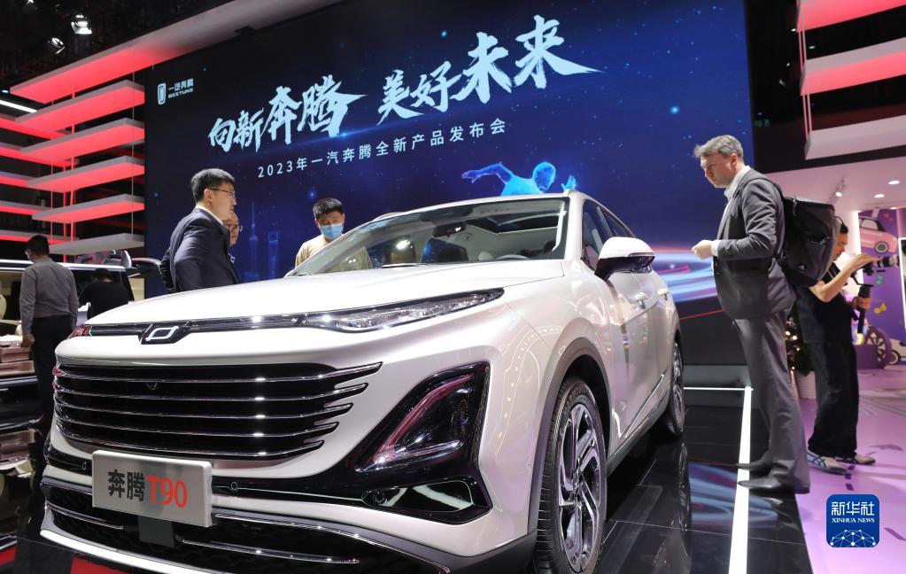 4月18日,參觀者在一汽奔騰品牌展臺(tái)上駐足。