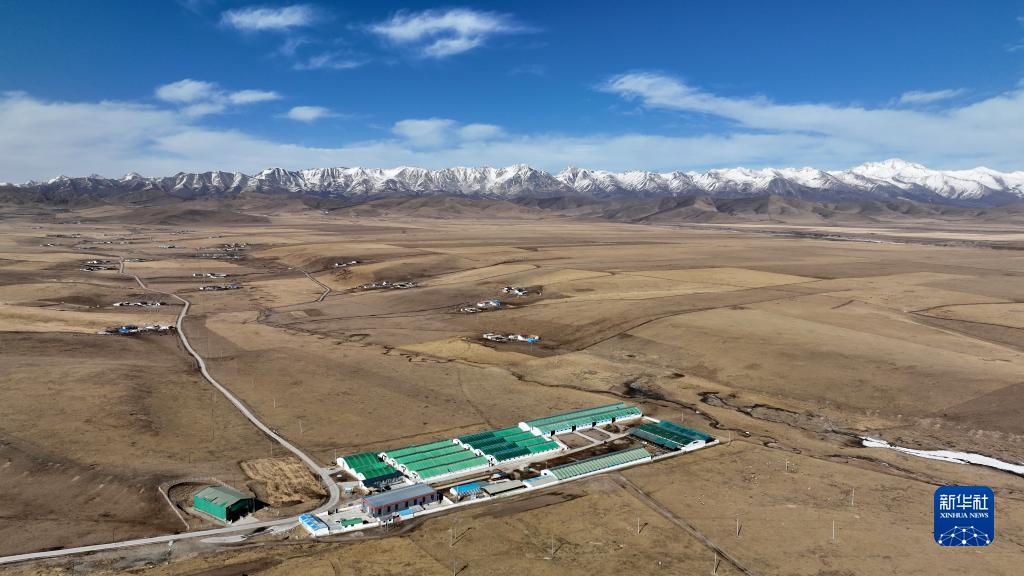 4月16日在青海省海北藏族自治州門源回族自治縣皇城蒙古族鄉拍攝的養殖畜棚(無人機照片)。