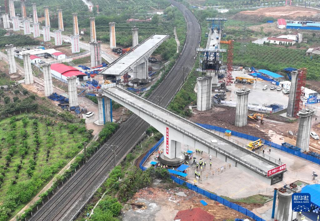 當(dāng)日,中鐵十一局承建的滬渝蓉高速鐵路荊門特大橋跨焦柳鐵路連續(xù)梁順利轉(zhuǎn)體,這是滬渝蓉高鐵完成轉(zhuǎn)體施工的首座轉(zhuǎn)體橋。