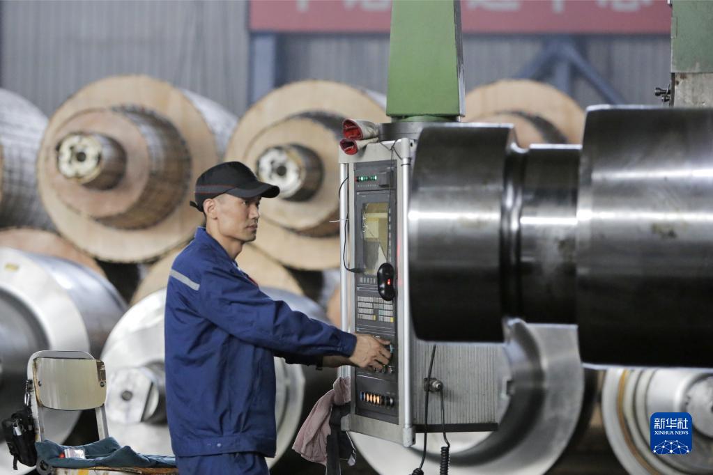 4月18日,工人在位于黑龍江省齊齊哈爾市的中國一重生產車間進行生產作業。