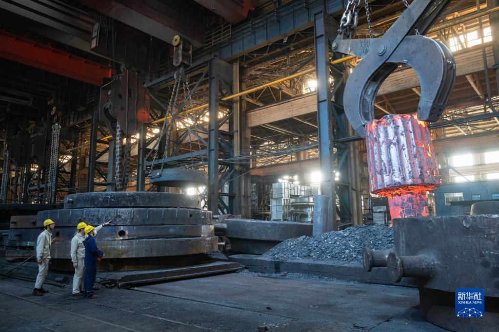 4月18日,工人在位于黑龍江省齊齊哈爾市的中國(guó)一重生產(chǎn)車間進(jìn)行生產(chǎn)作業(yè)。