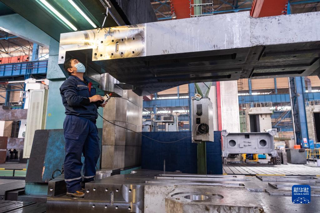 4月18日,工人在位于黑龍江省齊齊哈爾市的中國一重生產車間進行生產作業。