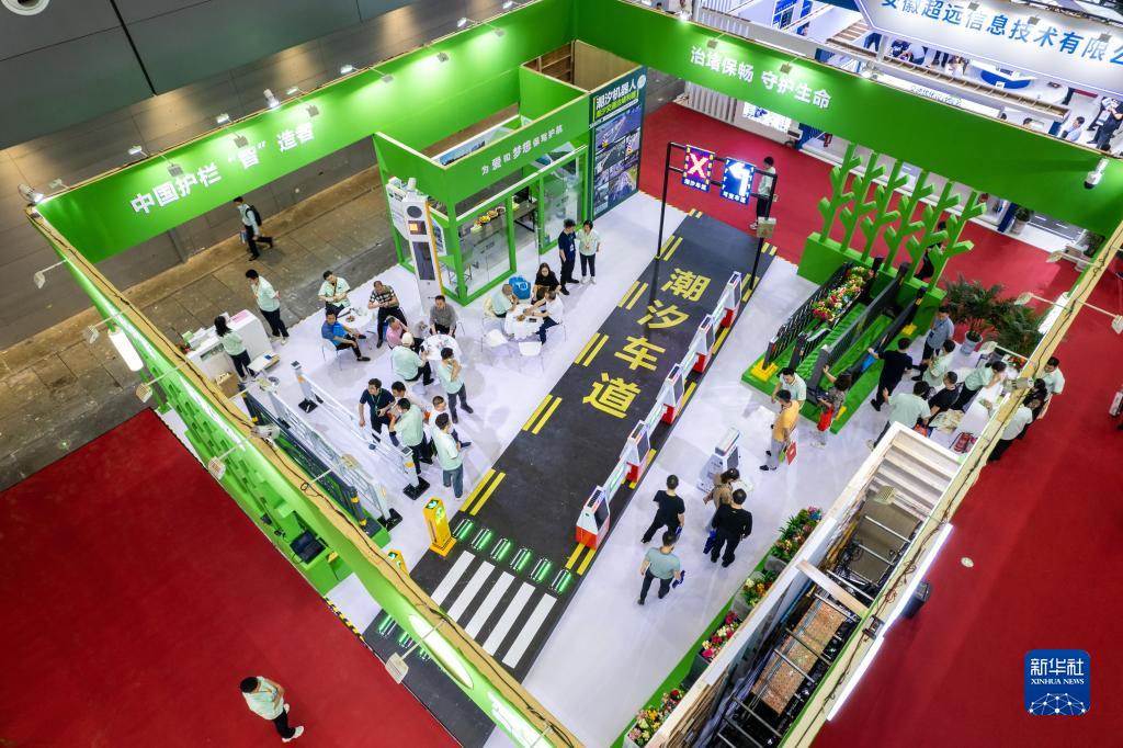 這是4月19日在長沙國際會展中心拍攝的交通治堵解決方案展示(無人機照片)。