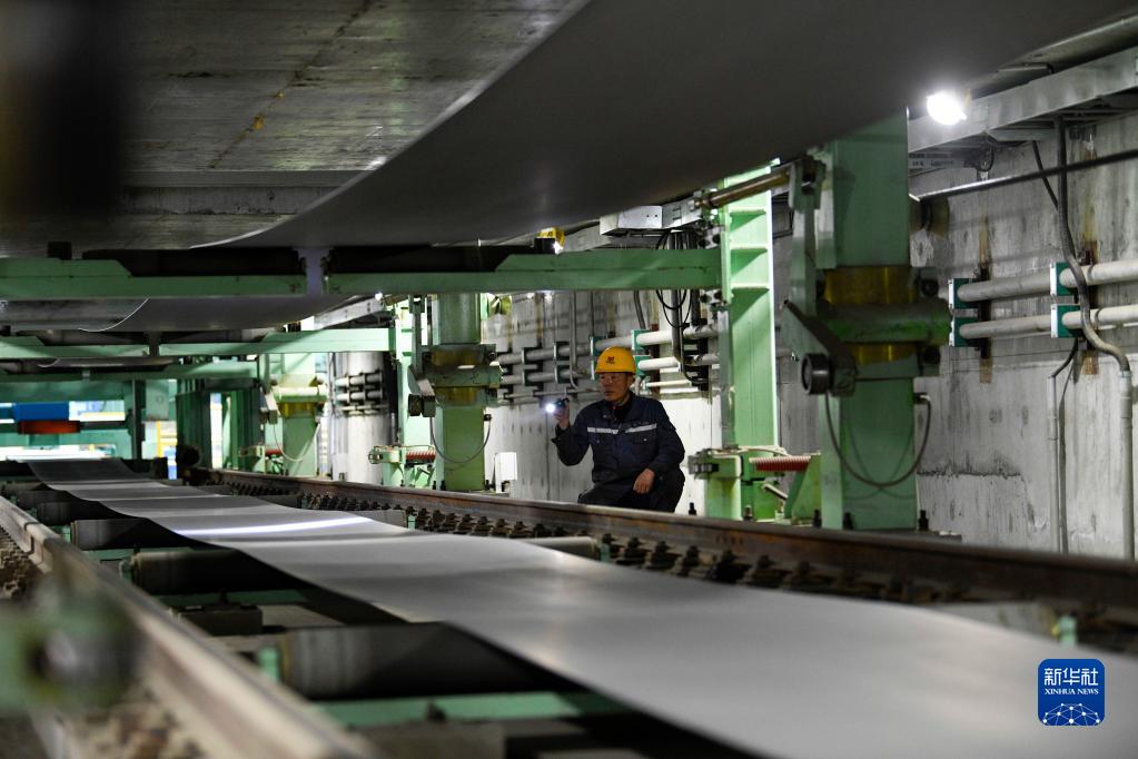 4月19日,在河北雙灤一家冶金材料企業酸洗車間,工人檢查產品質量。
