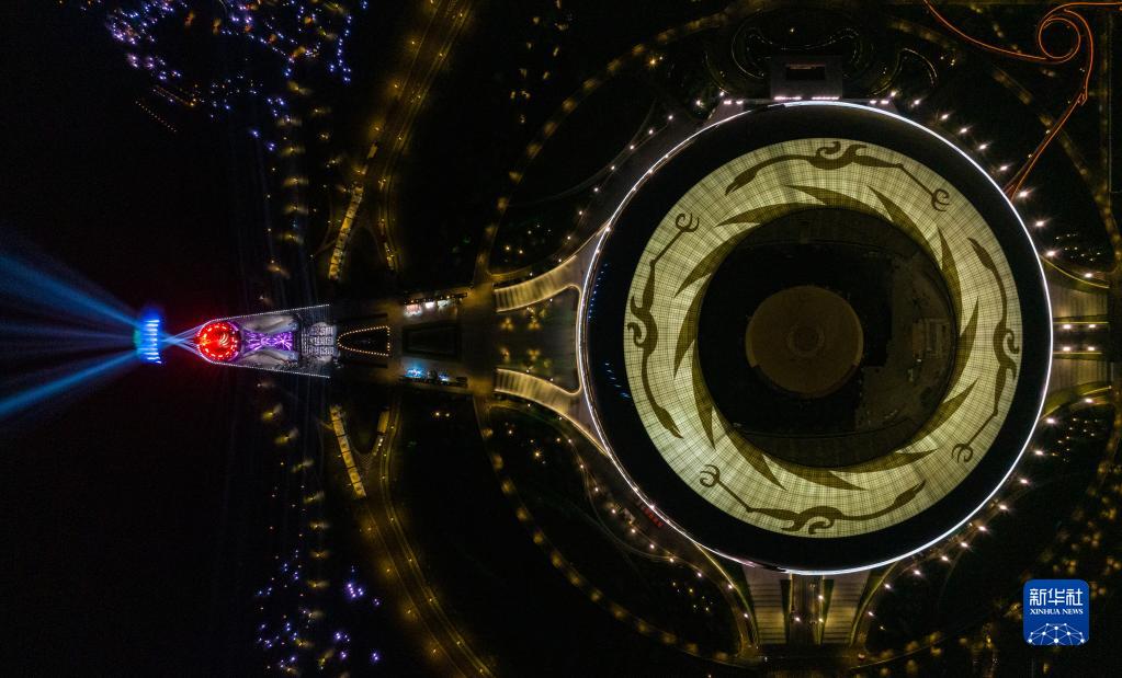 這是4月19日拍攝的第31屆世界大學生夏季運動會開幕式主體育場及主火炬(無人機照片)。