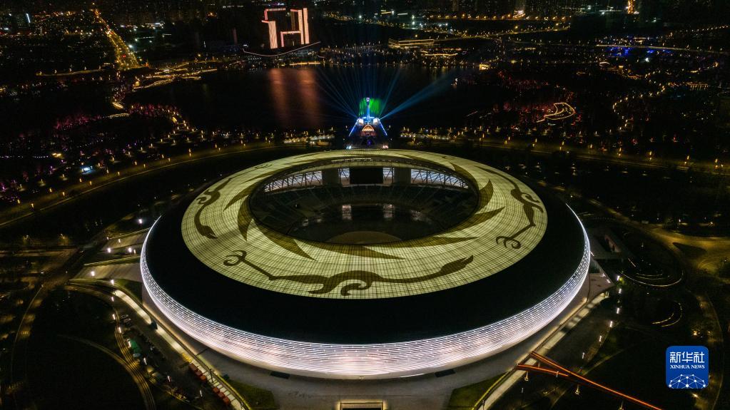 這是4月19日拍攝的第31屆世界大學(xué)生夏季運動會開幕式主體育場及主火炬(無人機照片)。