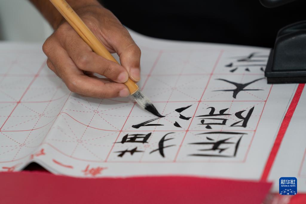 4月19日,參觀者在巴西里約熱內盧體驗中國書法。
