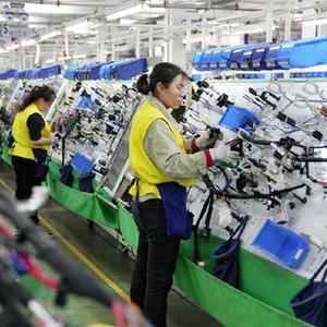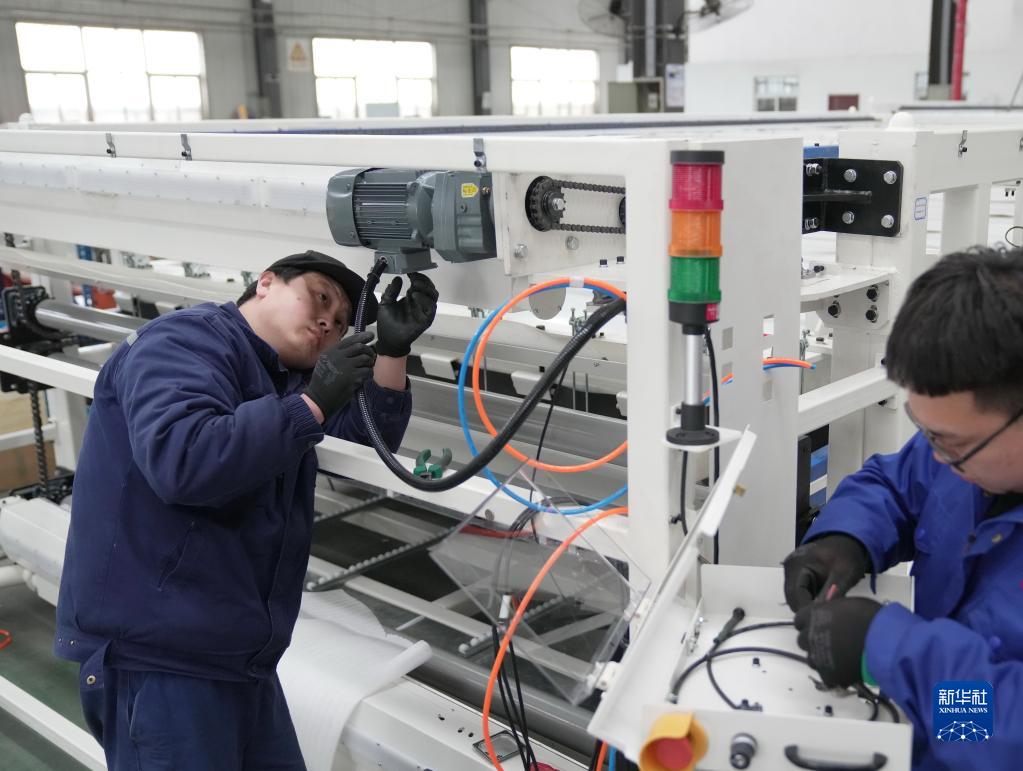 4月21日,工人在秦皇島市海港區一家光伏板制造設備企業的生產車間工作。