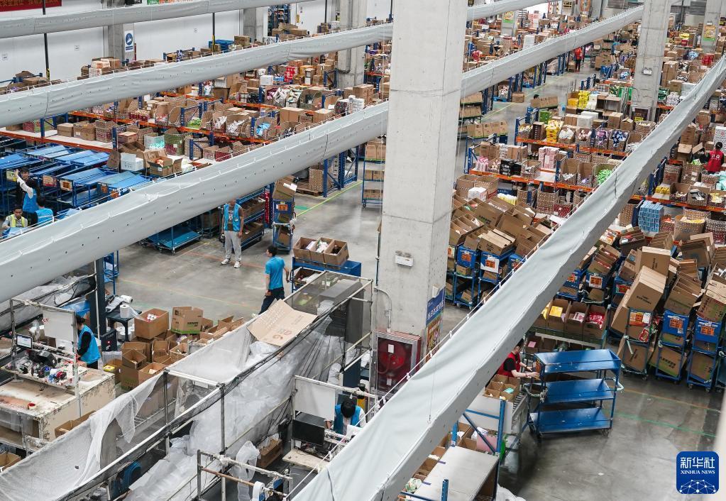 4月21日,員工在位于南京空港經(jīng)濟(jì)開發(fā)區(qū)(江寧)一家企業(yè)的商超倉內(nèi)忙碌。