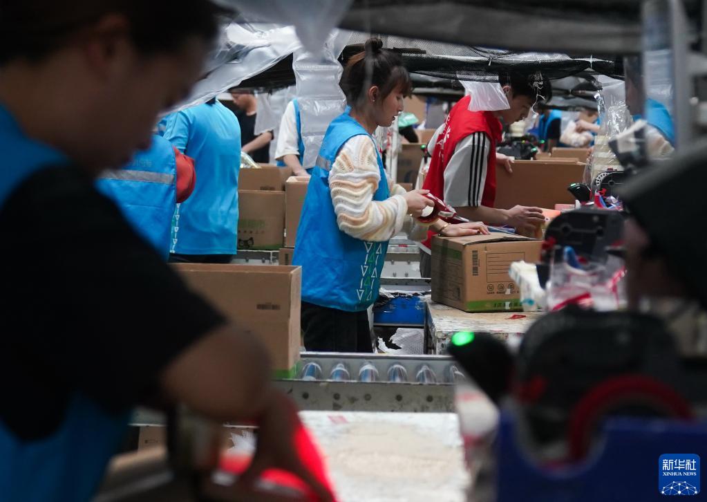 4月21日,員工在位于南京空港經濟開發區(江寧)一家企業的商超倉內忙碌。