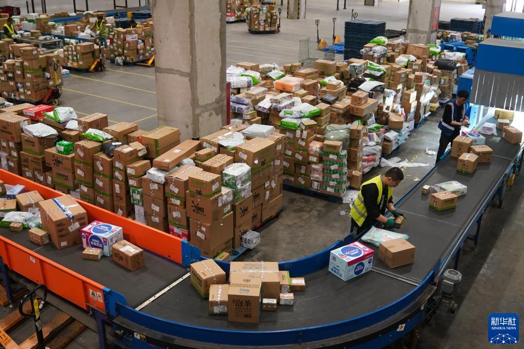 4月21日,員工在位于南京空港經濟開發區(江寧)一家企業的商超倉內忙碌。