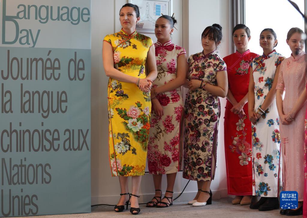 4月18日,在位于法國巴黎的聯合國教科文組織總部舉行的聯合國中文日慶祝活動上,演員身著旗袍候場準備。