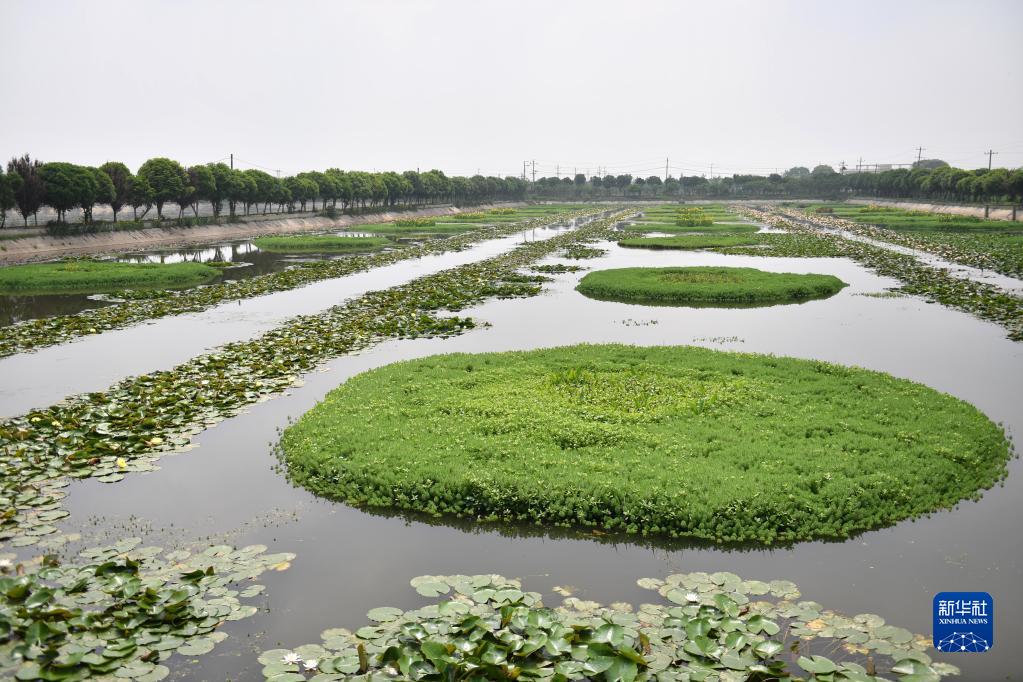 這是4月20日在大通湖水生植物產業示范園拍攝的浮島。