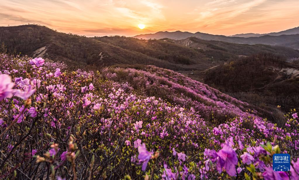 近日,在遼寧省岫巖滿族自治縣黃嶺村映山紅景區(qū),近千畝映山紅競(jìng)相開(kāi)放。