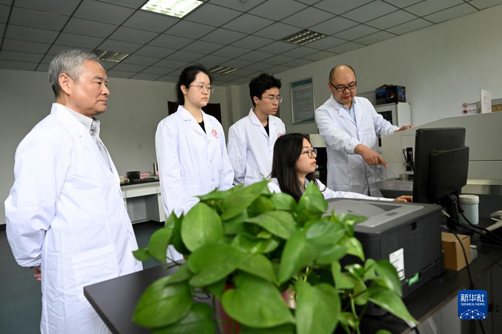 4月19日,在中科院合肥物質(zhì)科學(xué)研究院,固體物理研究所特種航天金屬材料研究團(tuán)隊(duì)研究員韓福生(左一)和副研究員王幸福(右一)在指導(dǎo)學(xué)生使用直讀光譜儀。