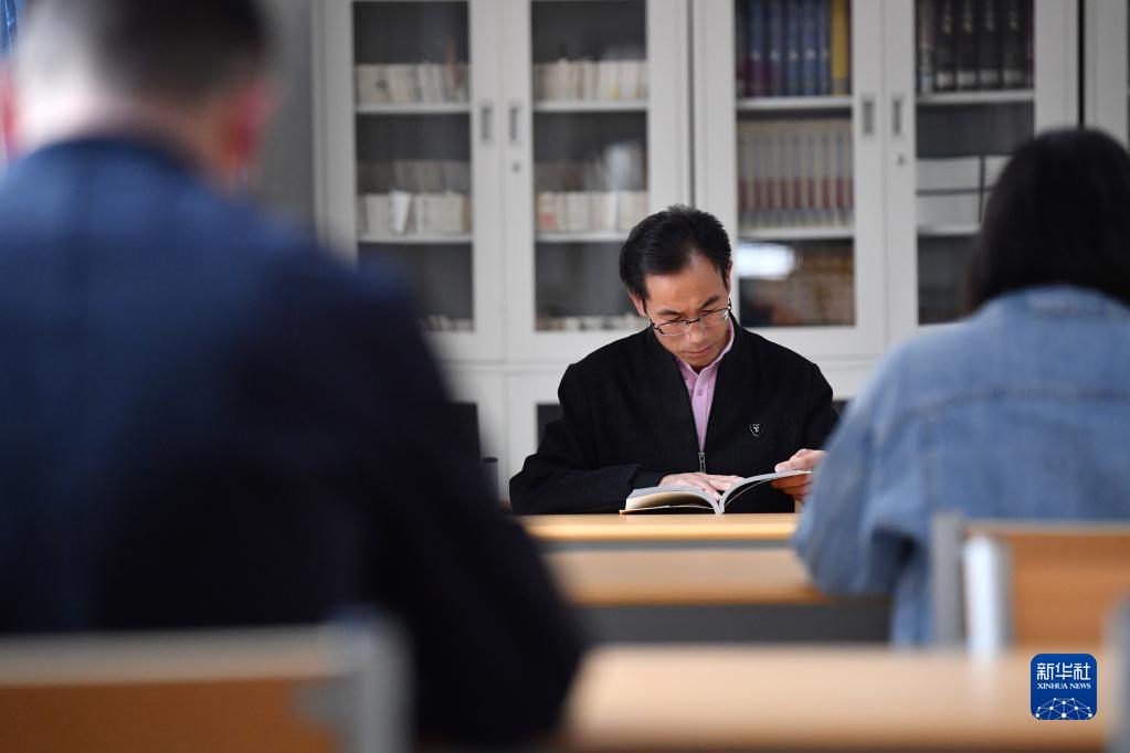 朱彥軍在靜寧縣圖書館閱覽室看書(4月10日攝)。新華社記者 陳斌 攝