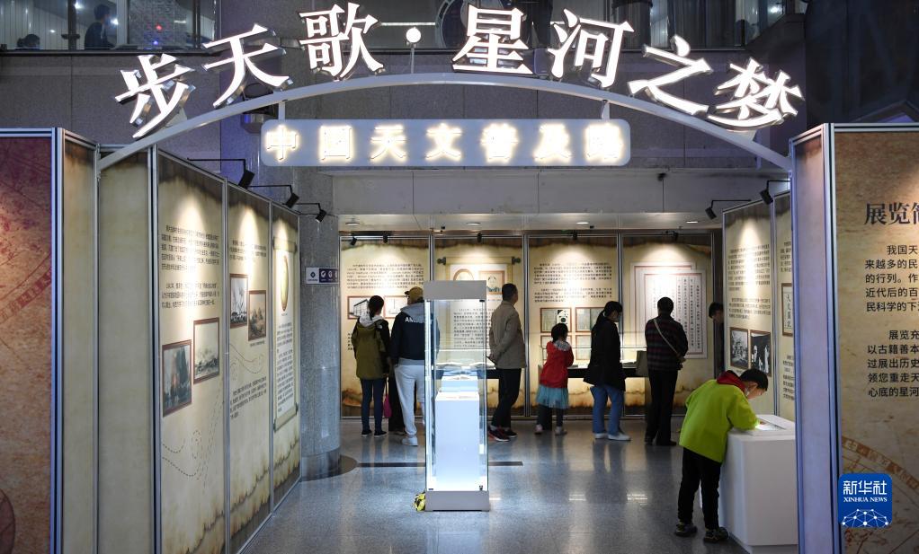4月22日,小朋友在安徽省合肥市科技館參觀“步天歌·星河之夢”展覽,了解航天知識。