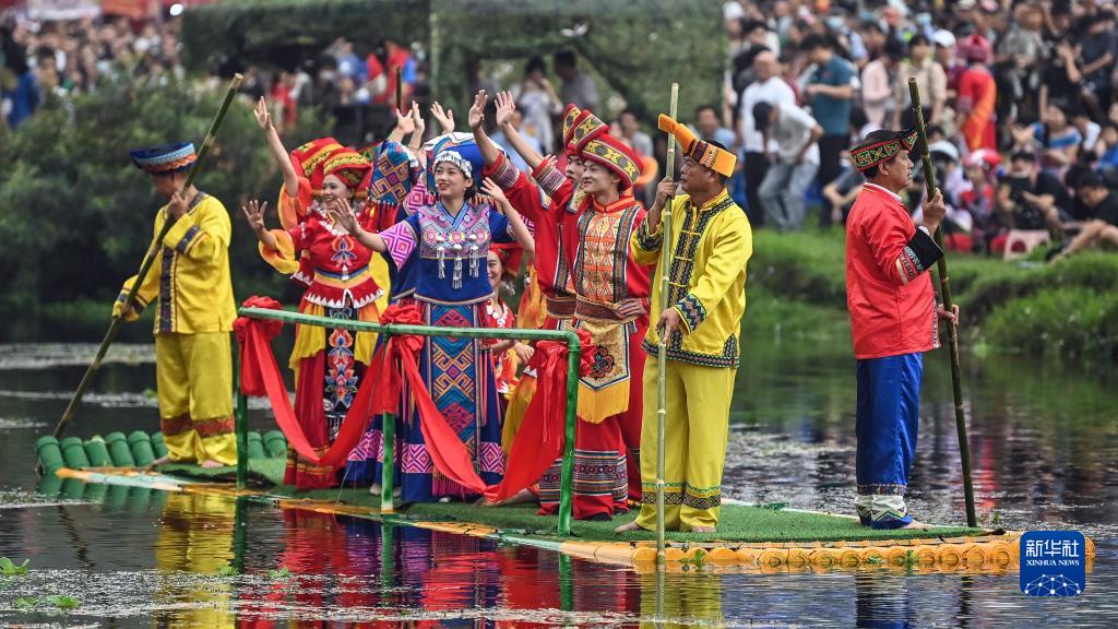 當日,廣西欽州市在欽北區貴臺鎮洞利江畔舉行實景演出,歡慶“三月三”傳統佳節。