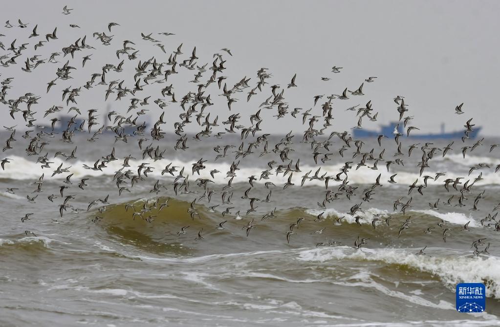 4月22日在閩江河口濕地拍攝的鳥浪。