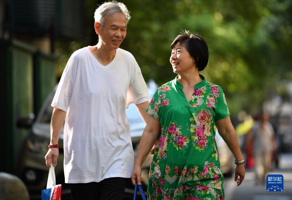 陳言人(左)、伍學(xué)花夫妻上完課后準(zhǔn)備回家(資料照片)。