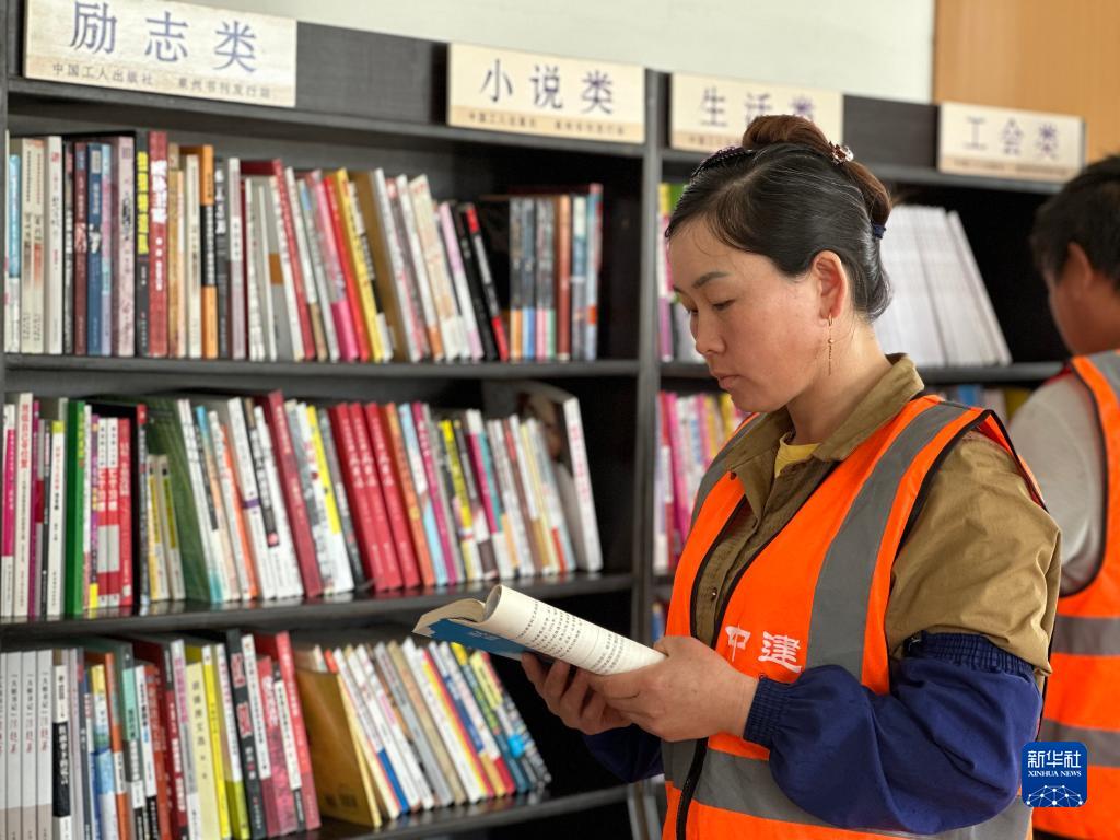 4月22日,在福建省廈門市一間為建筑工人打造的“工友圖書室“,一名工人在閱讀。