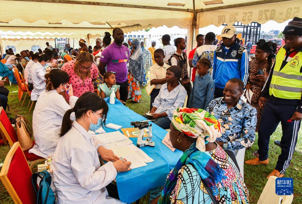 這是4月20日在喀麥隆首都雅溫得拍攝的義診活動(dòng)現(xiàn)場(chǎng)。