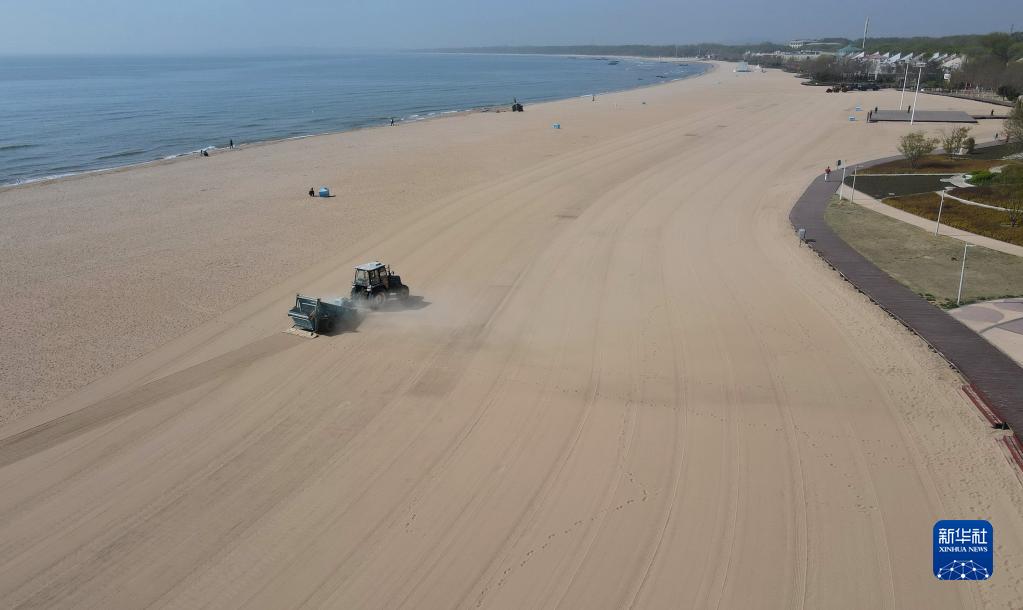 近日,旅游勝地河北省秦皇島市各浴場的工人開始對浴場的沙灘進行整理,精篩細沙,檢修旅游設(shè)備,準備迎接八方來客。