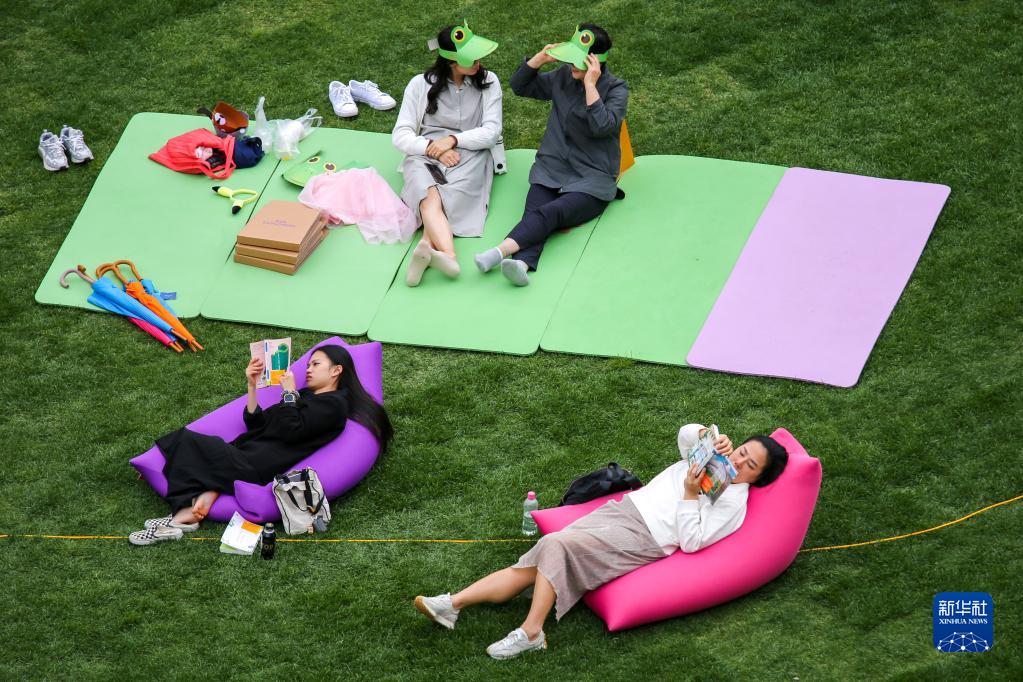 4月23日,人們?cè)陧n國(guó)首爾廣場(chǎng)上閱讀和休息。