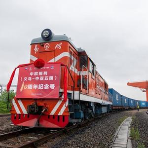 當日,載有100標準箱貨物的“義烏-中亞五國10周年紀念號”中歐班列在義烏西站鳴笛啟程,前往中亞五國,該趟列車也是義烏與中亞五國間開行的第2024列中歐班列。
