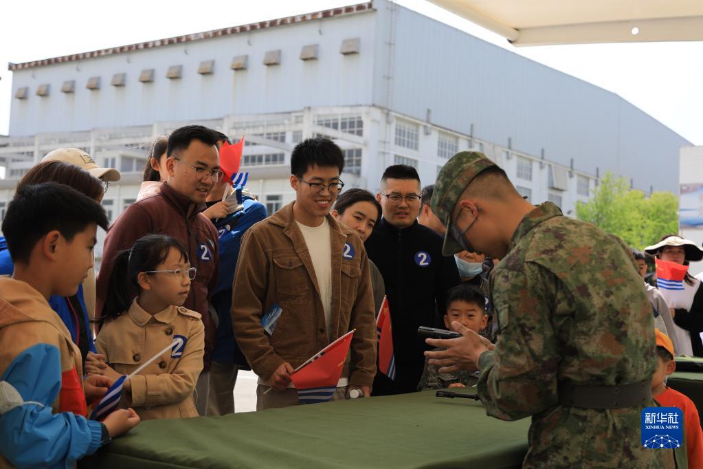 東部戰(zhàn)區(qū)海軍某師在上海組織軍營開放活動,一名戰(zhàn)士示范蒙眼槍支拆解組裝(4月22日攝)。新華社發(fā)(王碩鑫宇 攝)