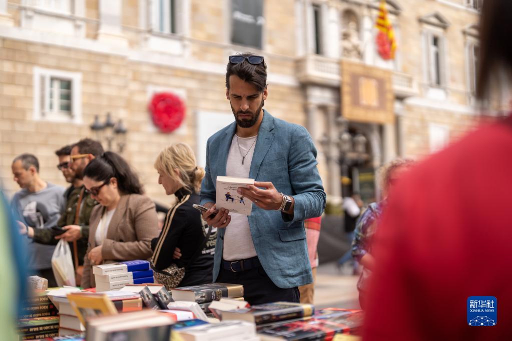 4月23日,人們在西班牙巴塞羅那街頭選購圖書。