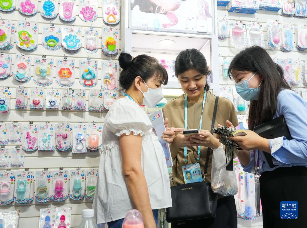 在中國廣州留學的印尼女生斯太芬妮·杰斯提娜得知第133屆廣交會首次設置孕嬰童展區的消息后,立即通知在雅加達開設嬰童用品貿易公司的家人。