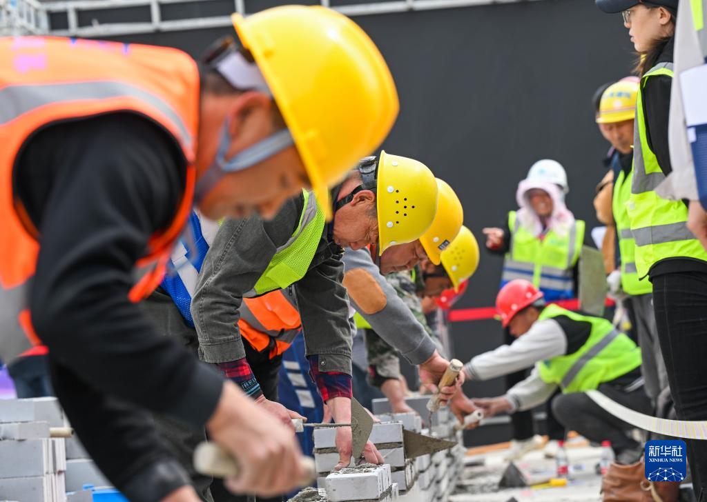 4月24日,建筑工人在參加職業技能比拼。