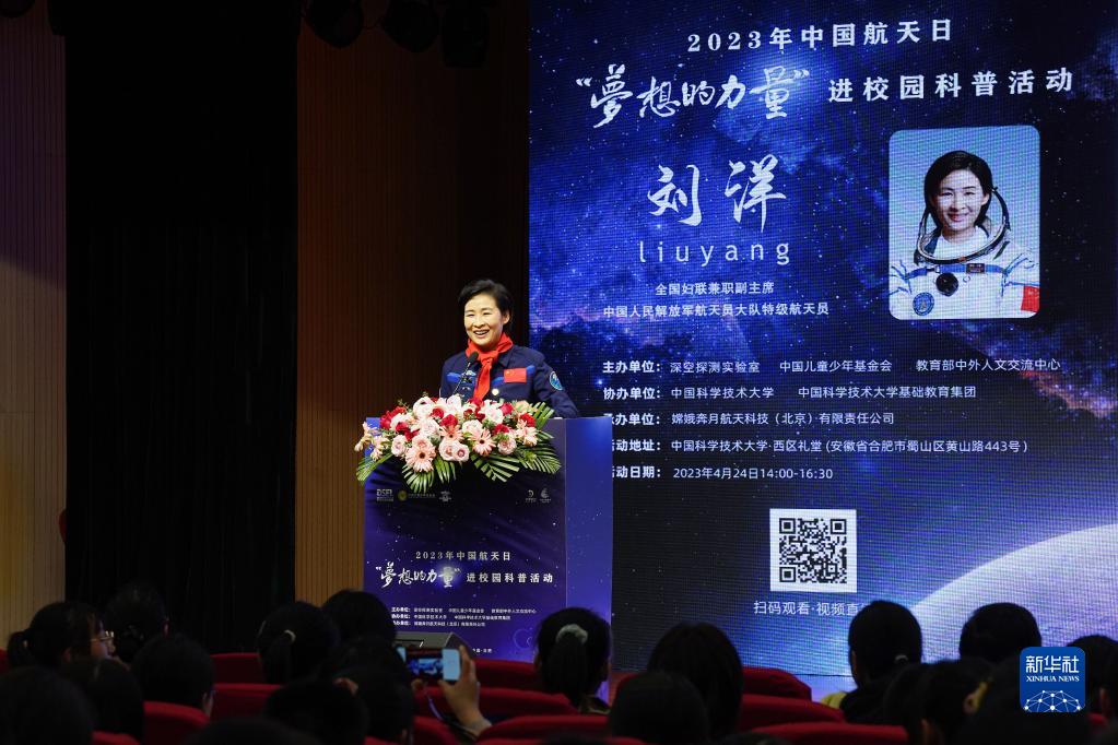 當日,2023年中國航天日“夢想的力量”進校園科普活動在安徽省合肥市中國科學技術大學舉行。活動邀請航天員劉洋向學生介紹中國載人航天的輝煌成就,分享個人飛天夢想與成長故事,為學生播下夢想的種子。