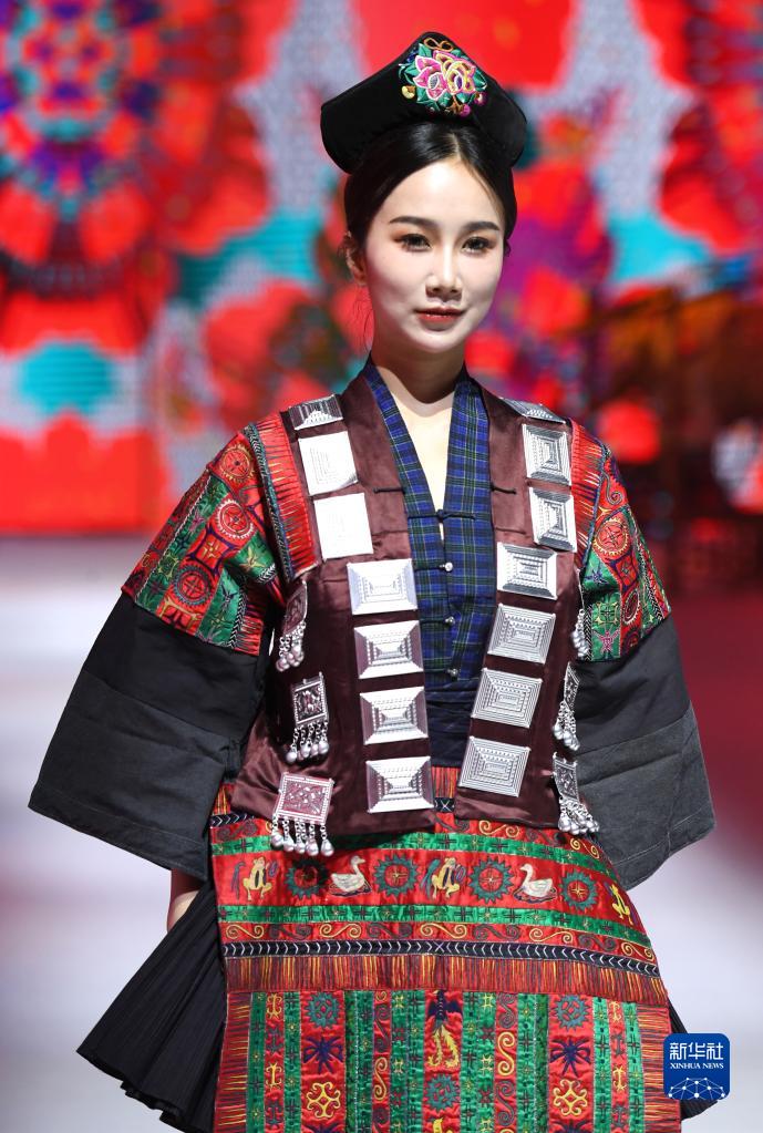 模特在廣西南寧市廣西文化藝術中心展示民族元素服飾(4月24日攝)。