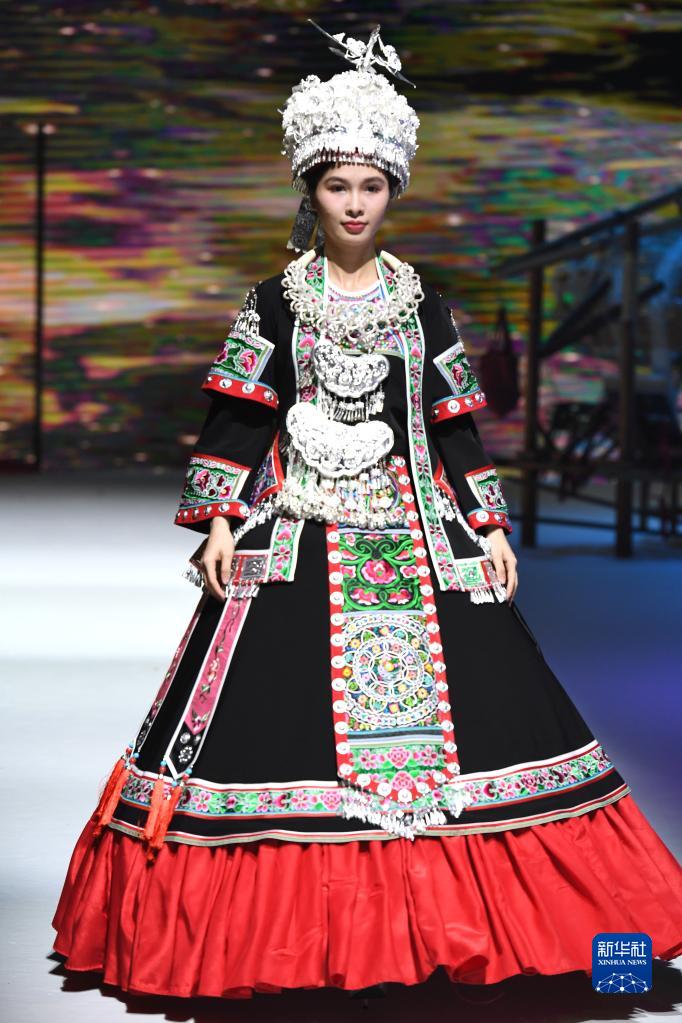 模特在廣西南寧市廣西文化藝術中心展示民族元素服飾(4月24日攝)。